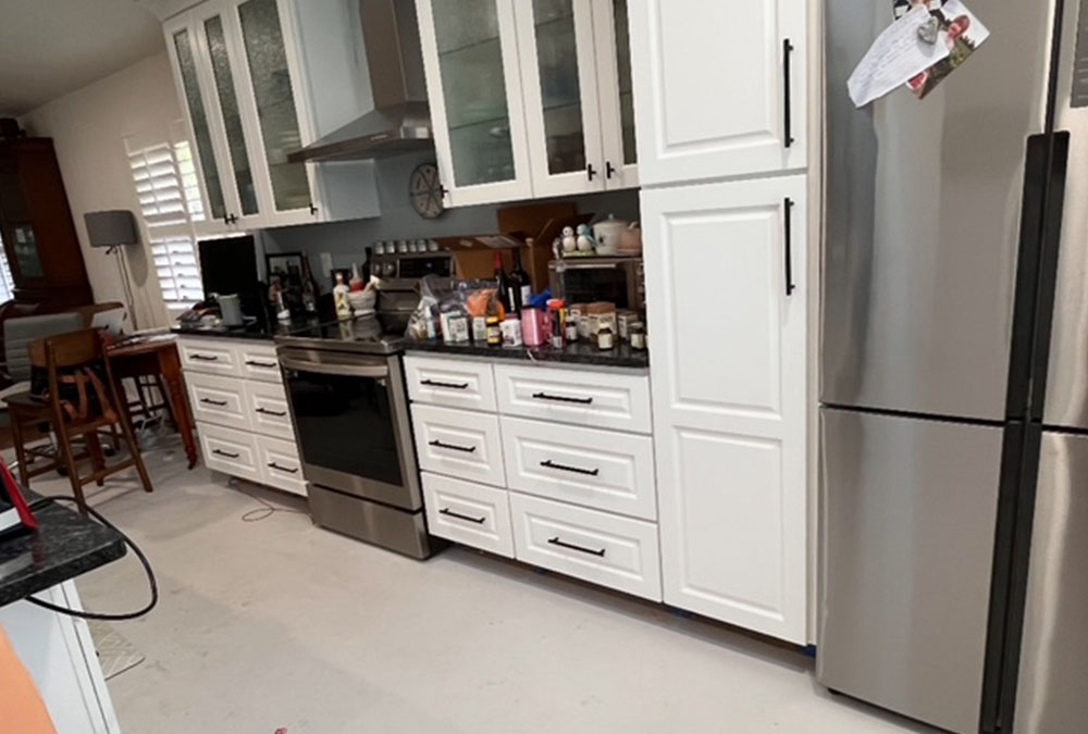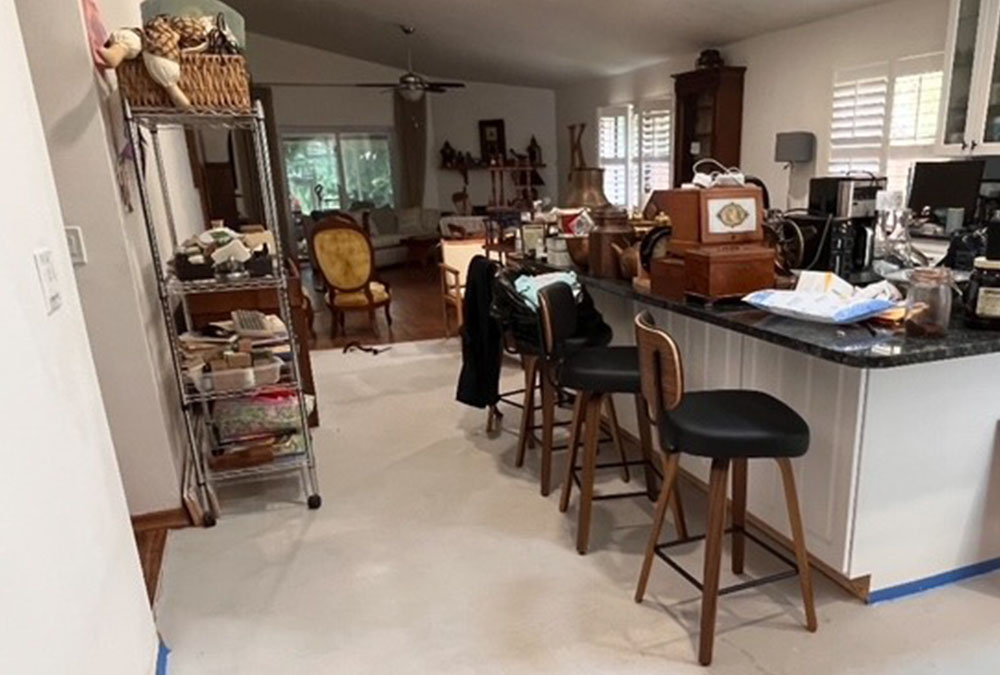 Below are before photos of a full condo renovation that is getting underway and a single-family home that is getting new stone flooring, doors, baseboards and molding and of course fresh paint.